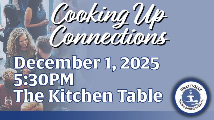 Cooking Up Connections Join the Prattville Area Young Professionals on December 1 at 5:30 PM at The Kitchen Table for a Christmas-themed cooking class. This fun and interactive event is designed to bring together local young professionals for an evening of hands-on cooking, networking, and holiday cheer. Participants will learn festive recipes, enjoy great company, and connect with other professionals in a relaxed, welcoming environment. The cost to attend is $40 per person, and space is limited to 15 participants, so early registration is encouraged. Come hungry, come curious, and get ready to cook up some connections this holiday season!Images